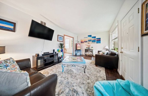 You and your family will love this 3-bedroom cottage home nestled in a peaceful, family-friendly neighborhood. You'll love how close it is to everything Cleveland has to offer, and the colorful and comfortable accommodations. Three bedrooms include a double and two queens, plus a full and fully stocked bath, a full kitchen with modern appliances, a living room with Smart TV, full dining room and on-site laundry facilities. You also get central AC, high-speed WiFi, and garage parking space.