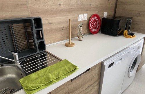 The kitchen is equipped with an oven, a refrigerator, a microwave, and cookware. Bathroom amenities include towels and toilet paper. And because there's access to laundry facilities, you can go a bit lighter on your packing. Other amenities include bed sheets, an ironing board, and air conditioning.