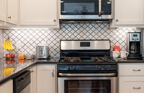 NEWLY Built in 2016 and designed by the owner for short term rentals. You will be invited to a fully fenced in property with one car garage that greets you with all of the modern amenities you would want in your home away from home. When you walk through the door you will be greeted with a bright living room and fully equipped kitchen. Go out the backdoor to your completely private backyard sanctuary with two rocking chairs, full patio set, an electric grill for a fun BBQ, and outdoor games. Upstairs you have TWO bedrooms (one with a comfy Queen Bed with 12" Hybrid Mattress and the other acts as an office or another sleeping room with Murphy Bed that has a comfy 10-in. Gel and Aloe Vera Hybrid Full Mattress-NO SOFA BED!). Don't forget about your upstairs balcony with two Adirondack chairs to enjoy a glass of wine or watch people go to our next door neighbor restaurants/bars like La BBQ, Juniper, Love Birds, and Wow Poke Food Truck!