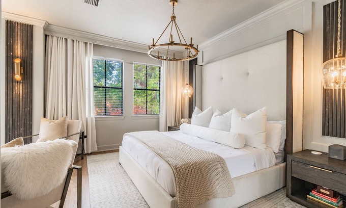 Stylish cozy townhouse professional designed in Tampa's historic Hyde Park community now available! Walk, bike scooter to downtown, SoHo, Hyde Park Village, the Univ. of Tampa. Walking distance to dozens of local coffee shops (Starbucks and Buddy Brew Coffee) steps away, bars and restaurants. Luxuriously appointed and sleeps 5! Step into the lux master hotel suite with walk-in closet and master bath. The space Less than a 5-mile walk or a $10 Uber ride to Tampa International Airport with off-street parking available. Common areas include a well appointed living area with TV, luxurious kitchen and additional 1/2 bath. private yard and WIFI