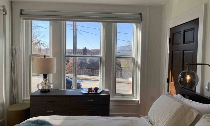 The Library on the River is a spacious 2BD/2BA condo overlooking the Iowa River is centrally located, easily accessible from all points around the city, and is exceptionally appointed. The Library on the River boasts large living areas filled with books, board games, a large workspace, and a pool table. The cozy spaces have plenty of lighting and seating throughout to spend time together or spread out during your stay. The deck overlooks the Iowa River and City Park for great sunset views and to watch the city's activity. The Library is located in a quiet building with only 3 units. It’s an ideal spot for friends to meet for a reunion, parents to visit their university student, or anyone attending a seminar at the Workshop or special event at Hancher Auditorium.
