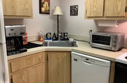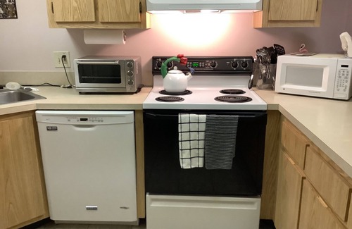 Condo has newer TV (can be voice activated), VERY quiet Maytag stainless-steel interior dishwasher, cute patio bistro set, Cuisinart convection oven/toaster, pod coffee maker, newer right-height toilets, newer Master Bath and guest bath vanity/granite top/faucet. Both master and guest room bedroom sets are in pristine condition. Also, condo is FULLY furnished with nice pans/pots/dishes and all sized glasses, including wine glasses. Newer silverware sets. This place has everything you need to spend a relaxing, carefree month or more in FL. Washer/dryer is full-sized. Private parking space. Community activities available. All utilities, TV and internet included. You won't find a better stocked rental anywhere. We strive to provide EVERYTHING you will need!
