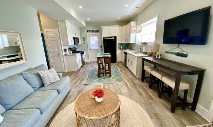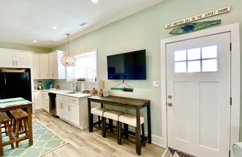Luxurious one story indoor + outdoor beach block living. An open floor plan with high ceilings + natural light, two generously sized bedrooms + large spa bathroom. Outside features a large, front patio, side yard perfect for dining + playing games complete with a private outdoor shower. Centrally located to walk to WaWa, Ernest & Sons (a Food Network cheesesteak favorite), Aunt B’s ice cream, Tiki Taco, Aversa’s bakery, shark park, + the beach! Head to Atlantic City for dining or the casinos, just 10 mins away. Enjoy as the best long weekend getaway, or an extended work from home retreat!