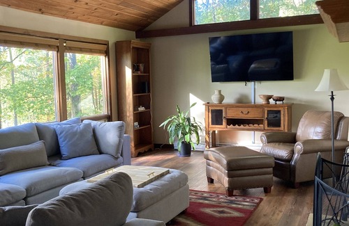 Keep it simple at this peaceful getaway nestled into a wooded area of the Nemacolin Woodlands Resort. This private home is in the perfect location for exploring the scenic Laurel Highlands .