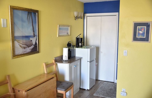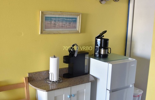The unit has a kitchenette with two burners, a smaller size fridge with freezer compartment and basic cooking utensils. There is free high speed wifi installed in the condo.