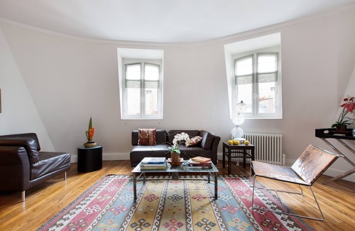 Top floor in the light-filled "tourelle" of a Haussmanian building, with elevator . 3 beds. Sleeps 6.