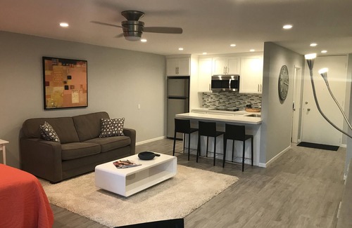 Beautiful, remodeled studio, with a King size bed. The blackout curtains are just perfect for a good night’s sleep.