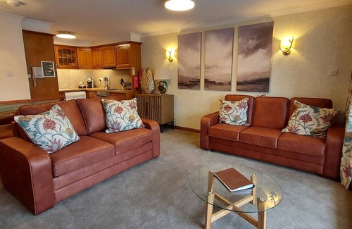The sitting room has lovely open views with large patio doors leading into the furnished conservatory. The interior is tastefully furnished and includes a games table, leather suite, and soft lighting provided by lamps. The large dining table and seating are ideal for entertaining. All lodges benefit from a television providing “free to view” channels, a combi DVD/VCR, direct dial telephones incorporating voicemail. All lodges are equipped with Free WiFi, and all bedding and towels. The dining table seats six and is ideal for entertaining. The fully-fitted kitchen is neat and well equipped and has all modern appliances including; full-size oven and hob, fridge/freezer, microwave oven and dishwasher. There is a full range of crockery, cutlery, glassware and cooking utensils.