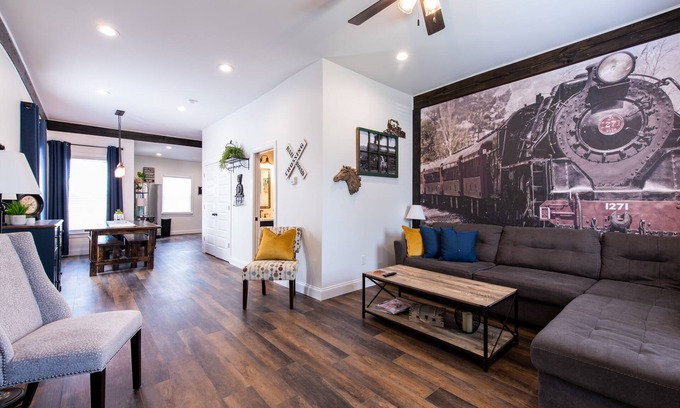 Welcome to our unique and cozy 2-bedroom, 2-bath house, where the excitement of train-themed decor meets the convenience of modern amenities. Located just a stone's throw away from Churchill Downs and the bustling Fair and Expo Center, this property is perfect for guests looking to immerse themselves in the vibrant energy of Louisville. Please note that train and airplane noises can be heard nearby, adding to the charm of this locomotive-themed getaway.