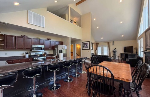 Inside, you’ll find four beautifully furnished living rooms, giving everyone plenty of space to relax. Each home features its own fully equipped kitchen and dining area, perfect for preparing group meals. Entertainment abounds with not one but two private game rooms, stocked with favorites like pool, foosball, and shuffleboard—ideal for nights of fun after a day of adventure.