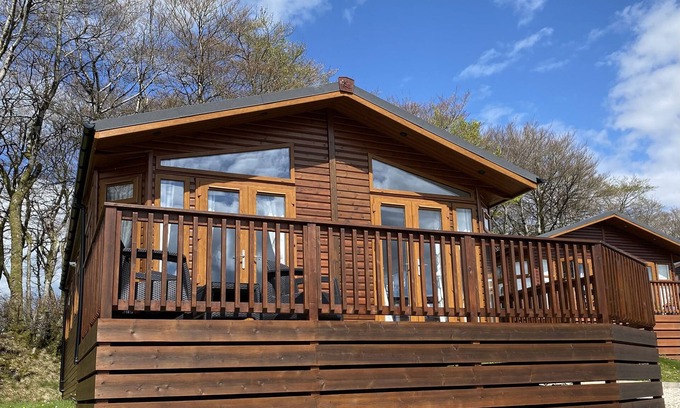 This single-storey lodge rests near Tavistock, Devon and can sleep four people in two bedrooms.