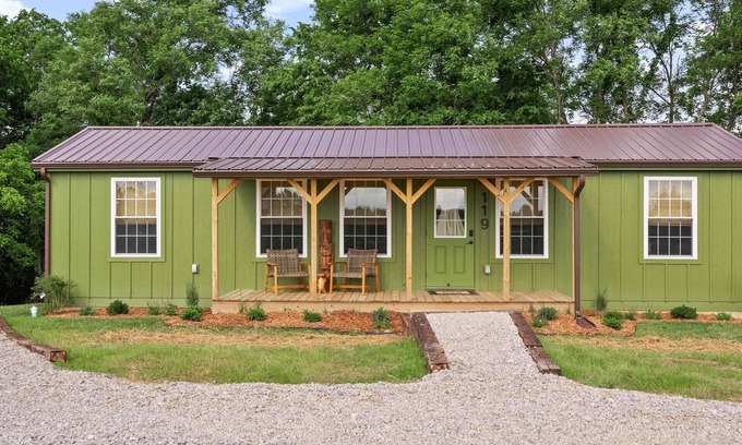 This gorgeous "safari lodge" has everything you need for a getaway in Williamstown KY! Inside the home you will find a lovely kitchen, supplied with all the basic essentials for everyday cooking, with a full oven, refrigerator, microwave, toaster, and coffee maker. Coffee grounds and tea bags are also provided! In the main living space there is a comfy pullout couch bed, a tv with cable, a dining area, and an adjoining full bathroom. There are two bedrooms with queen beds, one of which has a private, full bathroom with a walk-in shower!