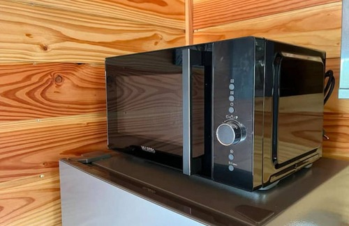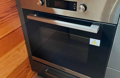 The kitchenette is equipped with an oven, a stovetop, and a refrigerator, as well as a coffee maker, an electric kettle, and a microwave. Bathroom amenities include a hair dryer, towels, and toilet paper. Other amenities at this 1-bedroom, 1-bathroom rental include bed sheets, an ironing board, and heating.