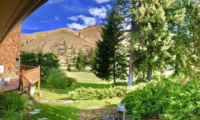 Outside, a fire pit, external bbq, wrap around deck, and almost a half mile of river are available for our guests to use. Inside, the full kitchen, large dining room, roaring fireplace, three full bathrooms and timeless great room are all yours. In the surrounding area are thousands of acres of sparsely populated woods and mountains full of native wildlife. Up high, Alpine lakes and meadows full of beargrass and huckleberries are waiting.