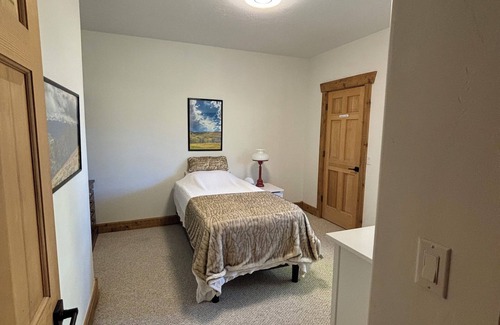 Ideally located 1600 sq ft, mountain apartment close to mountain biking, skiing, hiking, and other mountain activities! Space has 11 ft ceilings with lots of outdoor light. Fully stocked kitchen, private washer/dryer, luxurious master bedroom with king bed and blackout shades, and large ensuite bathroom with heated floors. Smaller bedroom sleeps up to two (one twin bed and one blow up mattress if needed), large living room with entertainment center, board games, and ping pong table!