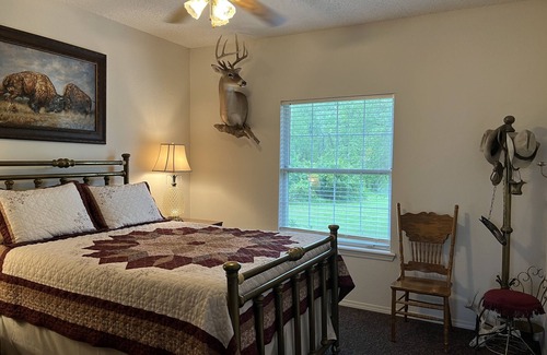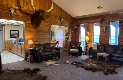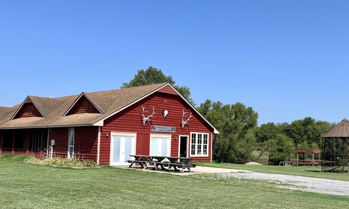 Relax and enjoy a beautiful getaway to a cozy lodge in the Green Country of Oklahoma. The night skies are perfect for star gazing and the fish are usually biting in the multiple ponds surrounding the lodge. This fully equipped home includes a full kitchen, family room, 2 dining areas as well as outdoor dining on the patio or nestled under the covered deck. A variety of guided outdoor experience tours are available. Enjoy lots of family fun exploring the area and taking in all the exotic animals on the property, from white bison to kangaroos, lemurs, deer, elk, antelope and more.
