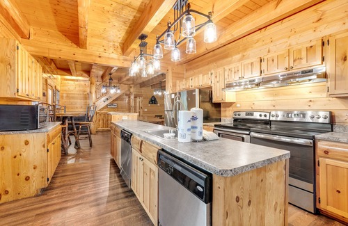 Discover the idyllic setting of Great for Groups - Lodge with Two Hot Tubs, Game Room & Shared Pool - Dogs OK, where your dream wedding comes to life. This spacious log lodge is a remarkable choice for those seeking an unforgettable venue in Pigeon Forge, Tennessee. With ample room to accommodate large gatherings, you and your guests can create lasting memories surrounded by rustic charm and modern amenities.