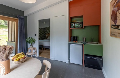 Did you dream of it? They did it ! Yes yes ! Sleeping at the foot of a volcano is now possible! Hidden in the heart of a pretty wood, the 24 lodges of Lemptégy, pretty ultra-comfortable and stylish bubbles await you! The lodges are located at the foot of the Volcan de Lemptégy, 15 minutes from Clermont-Ferrand, in the heart of the Chaîne des Puys listed as a UNESCO World Heritage Site, the Volcan de Lemptégy (labeled Grand Site de France) promises you an unusual trip. and a total change of scenery in the center of a unique volcano! You will also be located 1.6 km from Vulcania. The Lodges of Lemptégy are perfect for an immersion in the heart of the Chaine des Puys in an unusual accommodation and are the essential stage of your next journey! They are composed as follows: - A living room – small kitchen area (fridge-microwave-coffee machine-dishes) Sleeps 2 people in the comfortable sofa bed - A bedroom with a 160 bed (or two 80 beds that can be pushed together) - A shower room/wc accessible from the bedroom For a few deniers, the greediest can enjoy a breakfast served on site! And there is even the Volcan de Lemptégy restaurant a few steps away (open depending on the opening days of the site). The icing on the cake, a private shaded terrace for absolute relaxation... So we book?
