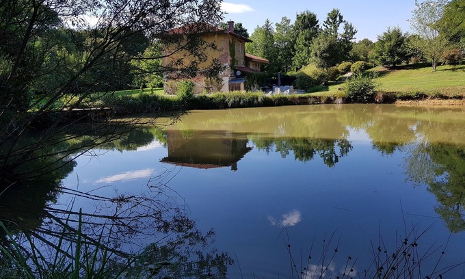 building of the 13th century with pond river swimming pool in a wonderful park of 2hect with games of bowls living room outside barbecue. 1 room 2 bunk beds .1 room 1 bed of 140. 1 room with bed of 140 and bathroom and toilet. 2 suites of 2 rooms of 12m2 each with 2 beds of 140 and 160 and 2 sofas of 140 with each bathroom and toilet