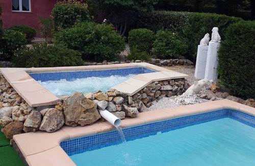 a swimming pool of 10mx4m and bubble baths with the beaches equipped with: (sun-chairs-tables-solar-shower and a corner in the shade for reading and rest)