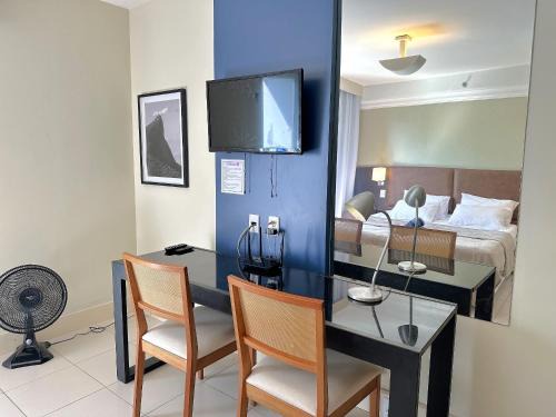 Loft agradável com vista para o mar | MASD615 is a recently renovated apartment in Macaé, near Praia do Pecado. This beachfront property offers access to a balcony and free private parking. During your stay at this apartment, you can use an outdoor swimming pool, as well as a selection of a sauna and a 24-hour front desk. With free Wifi, this 1-bedroom apartment offers a cable TV, a washing machine, and a fully equipped kitchen with an oven and microwave. Towels and bed linen are offered in the apartment. The property offers sea views. There is an on-site restaurant, and bar. Municipal Theather is 3.9 miles from the apartment, while Marechal Hermes Fort is 4.1 miles from the property. Cabo Frio International Airport is 47 miles away.