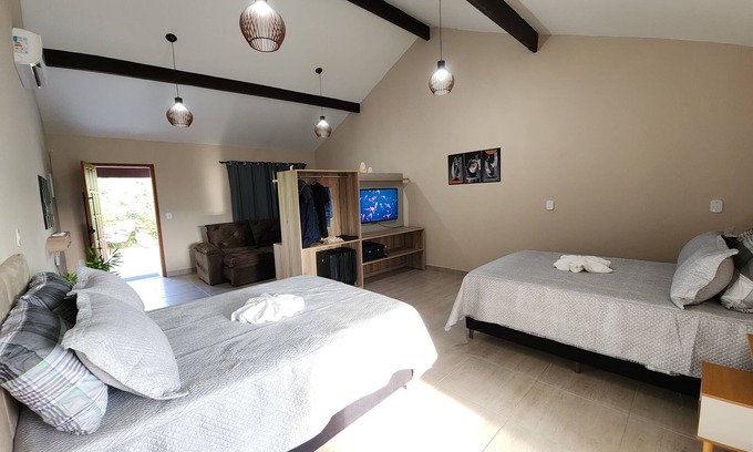 Best-rates for the Miguel Pereira ski chalet starts from $58 per night with includes Air Conditioner, Parking, TV, Security/Safety, Bedding/Linens, Wellness Facilities, Laundry, Pet Friendly, Child Friendly, Internet, Kitchen with all other amenities. Perfect for Weddings is committed to ensuring every guest experiences a comfortable and extraordinary stay, whether planning a romantic getaway, a honeymoon, a pet-friendly stay, or celebrating with the entire wedding party.