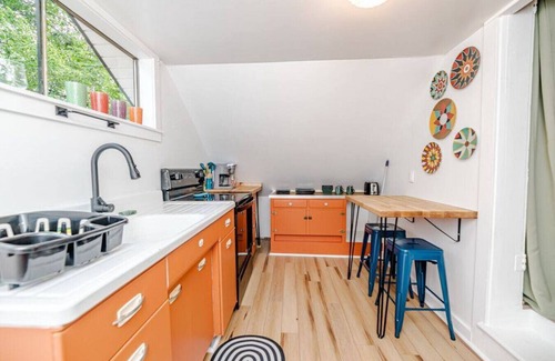 This 1930s cottage is the perfect spot for your stay in downtown Southern Pines. It is located on a quiet street, yet close enough to walk to all the shops/restaurants downtown or the Weymouth Center for the Humanities. This loft unit has a private entrance from the top of the stairs with 1 bedroom (Queen) & 1 bath, a full kitchen, and shared laundry room downstairs in the back of the home. Unit features vintage kitchen! Come stay with us for a short stay or extended stay!