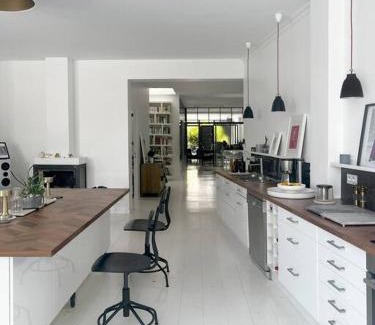 Providing a garden, Loft House, Pool & Garden features accommodations in Montreuil. This property offers access to a terrace and free private parking. The villa also offers facilities for disabled guests. With free Wifi, this 3-bedroom villa provides a flat-screen TV, a washing machine, and a fully equipped kitchen with a dishwasher and oven. Guests can enjoy an ambient stay in their soundproof room with parquet floors and a fireplace. The property has an outdoor dining area. The villa also offers a saltwater pool and an indoor pool for guests to relax in. Pompidou Center is 5.2 miles from Loft House, Pool & Garden, while Gare du Nord is 5.7 miles away. Paris - Charles De Gaulle Airport is 11 miles from the property.