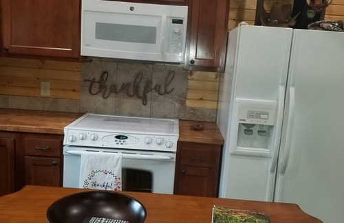 This rental comes with access to our 2 covered pavilions on the property. One is next to the creek that flows year round and has bathroom facilities w/showers and a large picnic table that sits over 20 people. We have swings at the park, both Pavilions have outdoor kitchens.