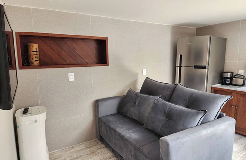 Located in Florianópolis, this welcoming apartment brings it all within your reach. Enjoy a short 5-minute walk to Morro das Pedras Beach or easily tackle the quick 5-minute drive to Praia do Campeche.