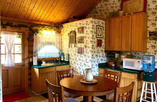 Kitchens: Log Cabin at Lynx Creek Farm boasts two fully stocked kitchens—one upstairs and one downstairs. They come complete with all dishes, providing everything you need for gourmet meals or simple snacks.