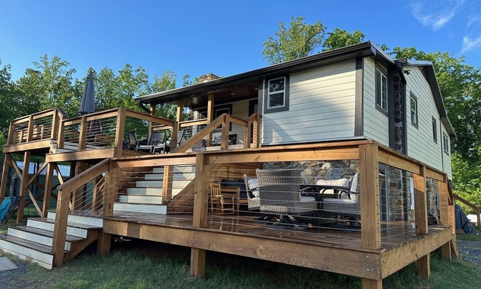 Lower cabin is also available as a separate rental with one additional bedroom and one bath (sleeps 2). The listing is Lovely Farm Cabin Experience on Vrbo.