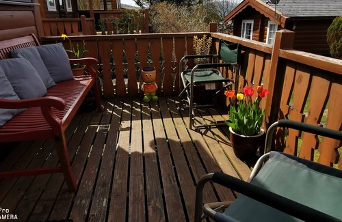 Relax in the garden or sip a drink on the balcony of this cabin. For a change of scenery, come inside and enjoy the free WiFi and TV.