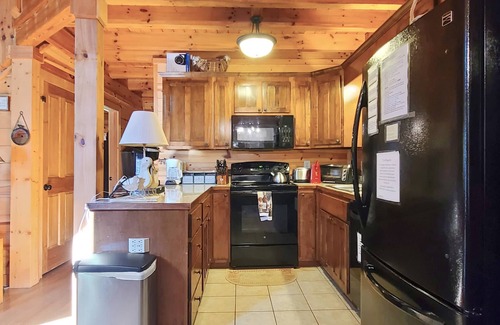 If you prefer to "dine in", you can prepare your meal in the full kitchen, use the outdoor grill or build a fire in one of two fire pits located on the property and enjoy your meal at the dining table, outside on the porch or on the picnic table. After dinner, lounge on the overstuffed couch and "bear" chairs or watch the sunset from the porch rocking chairs. If you're up for some activity, enjoy the combo pool/ping pong table in the game room, play one of the many box games available to you, put together a picture puzzle, watch TV or use your laptop, tablet or iPad.