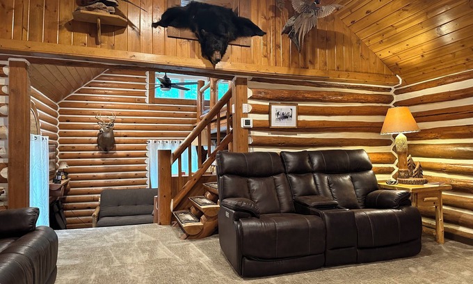 Charming 1933 log cabin, fully renovated within the past few years. This cozy retreat features 2 bedrooms plus a separate bunk bed area. The modern kitchen boasts new cabinets, appliances, flooring, and countertops. Enjoy ample exterior space for trailers, ATVs, and more, with direct access to ATV/snowmobile trails just 5 minutes away. Located only 20 minutes from Pictured Rocks National Lakeshore and downtown Munising, this cabin offers the perfect blend of peaceful seclusion in the heart of Hiawatha National Forest and proximity to local attractions.The private en-suite primary bedroom upstairs includes a king bed, a balcony, and a full bathroom. The main level features a private bedroom with a king bed and a full bathroom with a stand-up shower. The lower level offers a spacious room with two full-size bunk beds (four full beds total) and a full-size futon. The large living area includes a dining table that comfortably seats eight, a leather couch, and two love seats.Guests have access to the entire cabin, though the attached pole barn is not accessible. The backyard offers ample privacy, with houses across the street but minimal intrusion. The driveway provides plenty of parking space for vehicles and trailers.