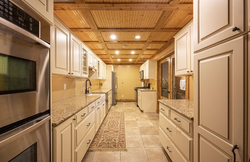 Located on Strawberry Lake and Bass Lake on a quiet secluded 7.45-acre parcel. Unique opportunity to host family reunions, weddings and any other gathering that requires large spaces. This spacious 8,428 Sq ft home offering full amenities & 7 private suites with full bath and sitting areas. Common areas include large great room with soaring ceilings and stone fireplace, family room also with stone fireplace, large catering kitchen, formal dining room and laundry room. Professionally landscaped with 2 ponds and a dock to get on both lakes. Kayaks are offered in the summertime and boat tours can be arranged to enjoy the Huron chain with 9 lakes. The rate per night found on this site does not apply for weddings. We have a seperate amount based on several packages that we offer. We are limited to weddings of up to 150 guests.