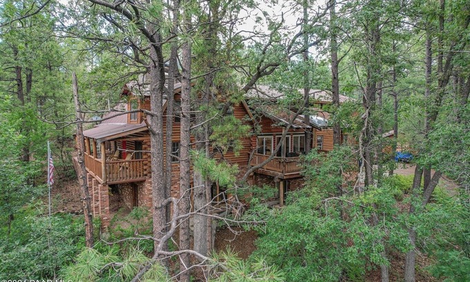 Welcome to the enchanting Log Cabin /Mountain Pines, a stunning 5400 square feet retreat nestled in the heart of Prescott, Arizona. This picturesque cabin is an idyllic wedding accommodation, offering an intimate yet spacious setting that can effortlessly host your dream celebration. Surrounded by the serene beauty of the Prescott National Forest, you and your guests will be captivated by the lush landscapes, creating a romantic backdrop for your special day.