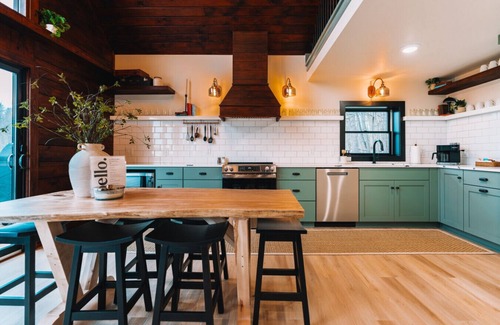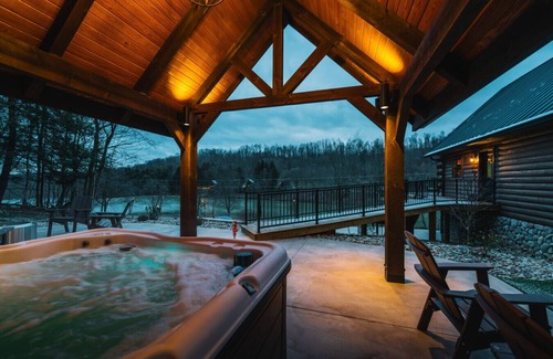 Welcome to our take on pure Americana goodness. Everything you need to escape the craziness of current times and pretend it’s 1974 comes with this beautiful, traditional, authentic log cabin. Modern updates wrapped in vintage elements adorn the cabin from top to bottom. Enjoy your coffee on the enormous front porch, where the view will bring you absolute serenity. Inside, feel the warmth of the real log walls, Amish-made furniture, and luxury bedding. In the loft, you will find a private king bedroom and a twin bed for extra sleepers. On the main level, you can host in the living room, eat-in kitchen, and front porch. This floor also features a master bedroom with a king bed and full ensuite, along with another private full bathroom. The lower level includes a king and twin bed, a private full bathroom, and a game and jam room equipped with a poker table, darts, and guitars. Outside, the real fun begins with a 50-foot practice putting green, hot tub, fire pit, and swing. Enjoy full access to the lake across the street—cast a line, take a kayak tour, and forget all your worries.