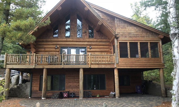 Plenty of room for the whole family or as a getaway with friends. Log cabin built in 2010. 5 bedroom with sleeping for 17. Howard Lake is a super clean lake. Water clarity 15 feet plus. 5 bedrooms include 2 bunk beds. Pull out couch has another queen.