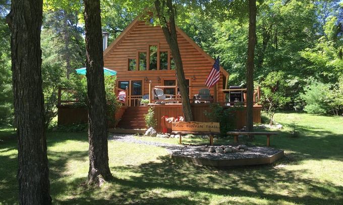 Immaculate Custom built Log Home with a large loft that sleep 4 plus 2 bedrooms with king beds that sleep 4, 1 bath & laundry room. Free Wi-fi included. Great room with stone fireplace, large deck (with new posts and rails in 2022) a great view of the lake. Lots of shade trees and a huge fire pit for campfires. Fish cleaning house with a chest freezer. 112 ft of shoreland and a private boat dock to fish from and tie up a boat. Garfield Lake is over 900 acres and a excellent fishing lake with a public swimming beach. This is a very quiet and peaceful place to relax and make wonderful memories with family and friends. Access to the Paul Bunyan trail is at the end of our driveway. Located 1/2 mile from Laporte, 10 miles from Walker, 25 miles from Bemidji, and 22 miles from Itasca State Park.