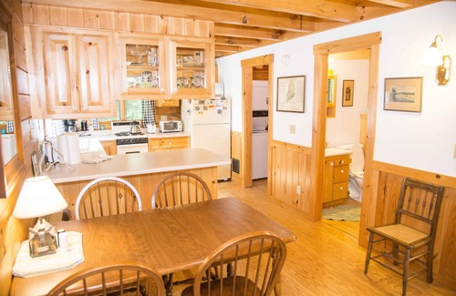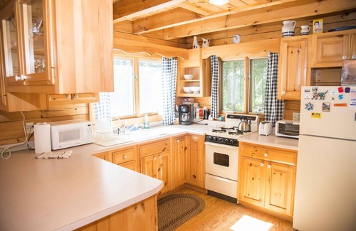 This 2-bedroom/1.5-bath cabin is just 75 feet from the lake with a non-motorized boat launch/shared access swimming area 100 feet from the cabin. There is also a deck and dock that is shared with our three rental cabins (properties #217363 and #217364, Awahnee and Loon cabins). Birches, maples, cedars, and pines surround the cabin. Abundant raspberries and blueberries in season can be found all along nearby walking trails. Enjoy frequent deer and other wildlife sightings, including the occasional moose. Hear loons at night.