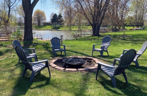 Cabin on Lake Poygan channel! Direct access to the lake, with two boat lifts and docks for all your water toys. Kayak, stand up paddle board, or just relax by the fire (indoors or out) while the lake life washes over you. All modern furnishings, one king bed, one queen, three bunks and a trundle. Fish from the dock or take the water toys out to the lake. Lake Poygan is over 14000 acres of fun. Winter offers ice fishing, ice skating, and snow mobiling (snow mobile trail accessable by lake).
