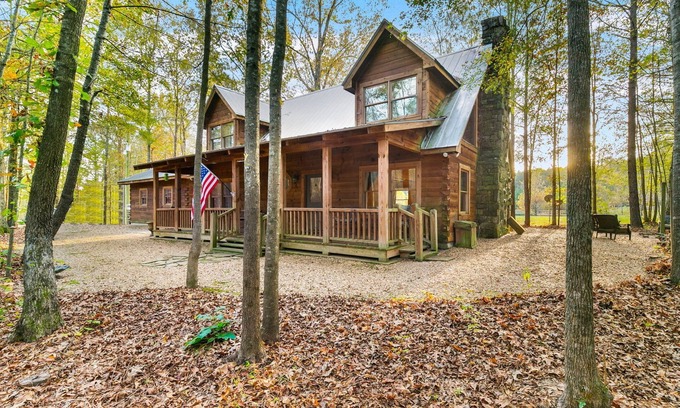 - 3-bedroom cabin nestled on 80 acres with WiFi, AC on private 5-acre lake.