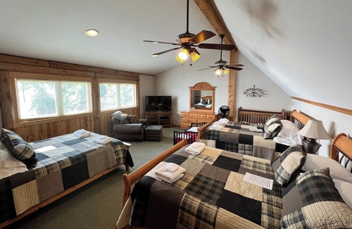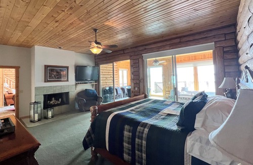 The master suite features a fireplace, private sunroom with and poker table. Master bathroom features clawfoot bathtub, custom walk- in shower, his and her vanities. Sunset Lodge also has satellite flat-screen TV's in the bedrooms, sound system with a CD player, DVD players, satellite internet service and unlimited long distance phone service. An pier, 6 new kayaks, trampoline, picnic tables, grills , an outdoor firepit enhance your outdoor fun and 100s+ miles of UTV/ATV Trails.