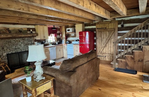 Take it easy at this unique and tranquil getaway! Go back in time while enjoying the comfort of modern conveniences. Nestled in the Shenandoah Valley, our cabin is made with logs from a late 1800s tobacco barn. Near many wineries, about 5 miles from the Virginia Horse Center, 6 miles from Goshen Pass on the Maury River, 8 miles from downtown Lexington, VMI, and W&L. Only 22 miles from Natural Bridge State Park. Enjoy peaceful moments on the porch with AMAZING mountain and sunset VIEWS! Basement twin beds can be made into a king, if preferred. Dogs allowed!