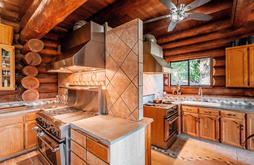 Your wedding experience will be enhanced by the myriad of features available at this lovely log home. Revel in the spacious living areas, while a wrap-around patio seamlessly connects indoor and outdoor spaces for your guests to enjoy. Unwind in the inviting 8-person hot tub or gather around the outdoor gas fire pit. The fully equipped kitchen ensures that you have everything needed for catering and entertaining, with two gas ranges, an espresso machine, and ample seating throughout. With additional amenities like a private jacuzzi in the master suite, pool table, and designated parking for up to 9 vehicles, every detail is designed to facilitate relaxation and fun during your stay.