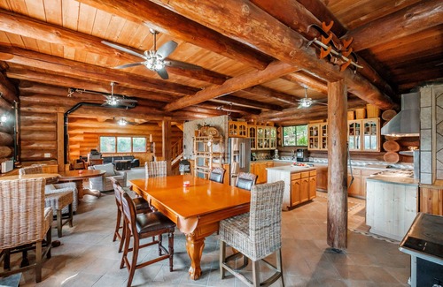 Experience an idyllic escape at the Log Home on the Saintiam River in Albany, Oregon, where rustic charm meets luxurious amenities, creating the perfect backdrop for your special day. Nestled on 5 acres of natural beauty, this stunning property offers breathtaking river views and accommodations for up to 14 guests, making it an ideal venue for intimate weddings or micro celebrations. With the warm wood interiors and vaulted ceilings, you'll find a cozy yet sophisticated ambiance that sets the stage for a memorable event.