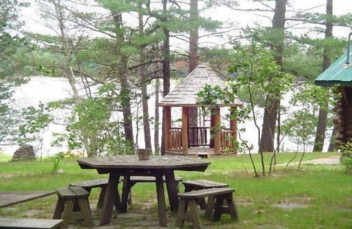 Our other vacation cabin is called “Junior” (VRBO 368462) The log homes are right on Wequas Lake, and our beautiful private lake is just a short walk into the woods.