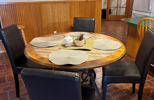 Experience peaceful and quiet surroundings in this furnished rustic log house on acreage, halfway between Rose Lake and Medimont, 1/4 mile off of Highway 3, 30 minutes east of Coeur d’ Alene. The house is a vintage custom-built home that is a clean, comfortable retreat with heating/AC; across the road from a Fish and Game bird sanctuary (swans, pelicans, geese , herons, and ducks) that is a favorite spot for bird viewing; catch glimpses of woodpeckers, owls, golden eagles, turkeys, and ravens on the property; close to bicycling (Trail of the Coeur d' Alenes); fishing, and boating. Can accommodate 2 to 6 people (not suitable for wheel chairs).