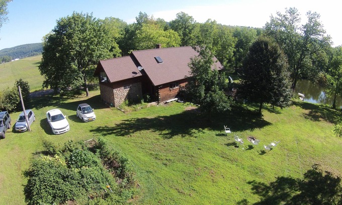 Log House on water, family get-a-way in mountains w/pond, fishing & Swimming | House in Tunkhannock